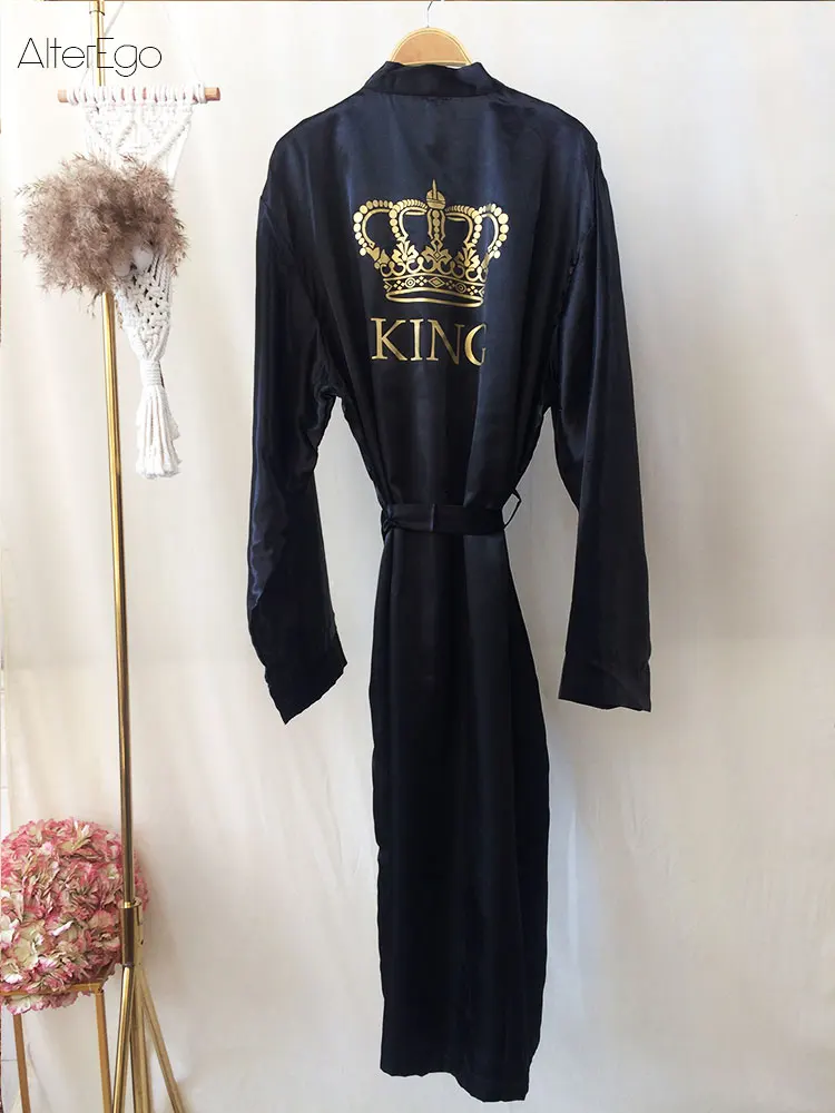 Customized Men's Bathrobe Silk Couple Set King and Queen Bath Robe Wifey and Hubby Robe Satin Valentine's Day Bathrobes Personal