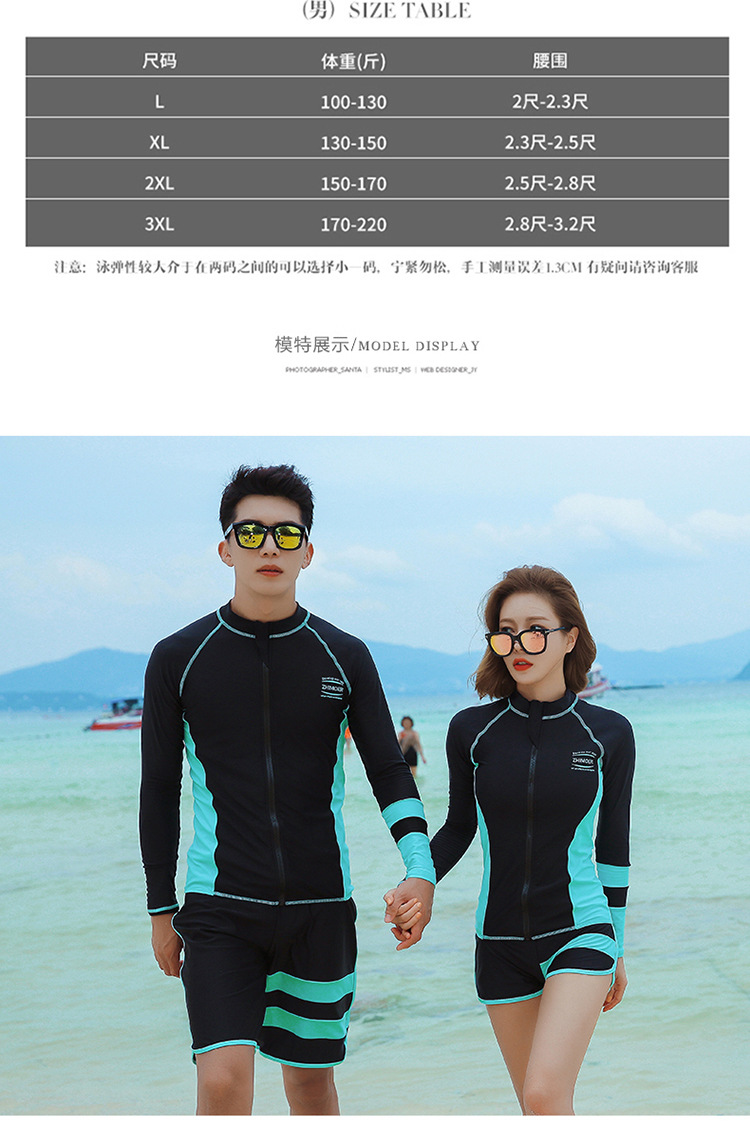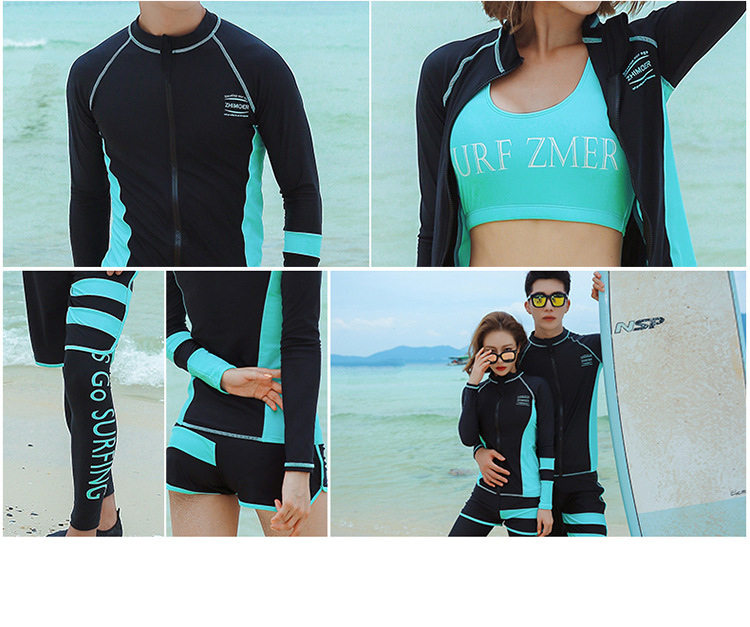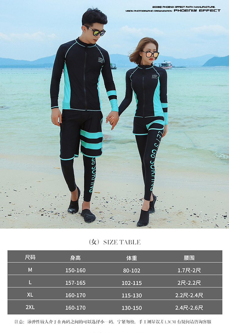 Men and Women's Full Body Zip Shirt and Leggings Set, Rashguard with Bikini, Surf Snorkeling Sun Suit, 3 PCs per Set